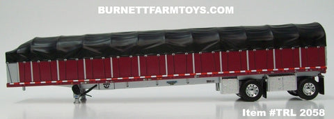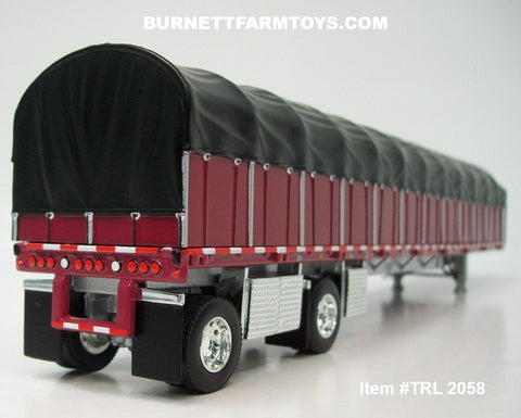 Item #TRL 2058 Burgundy Sided Black Tarp Silver Frame Spread Axle Wilson Roadbrute 53-foot Flatbed Covered Wagon Trailer - 1/64 Scale – DCP by First Gear
