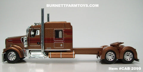 Item #CAB 2099 Brown Metallic Burgundy Stripe Red Outline Kenworth W900L 72-inch AeroCab Sleeper - 1/64 Scale – DCP by First Gear