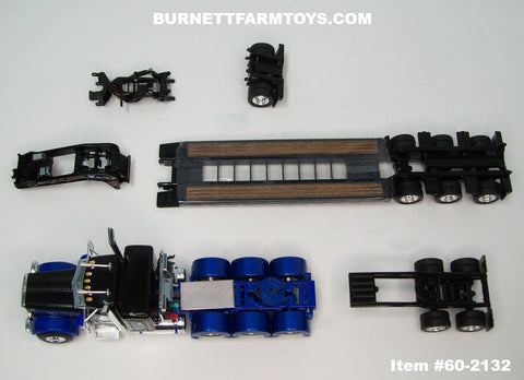 Item #60-2132 Black Blue Silver Outline Tri-Axle Peterbilt 389 36-inch Flattop Sleeper with Black Tri-Axle Heavy Haul Fontaine Magnitude Lowboy Trailer with Jeep and Stinger - 1/64 Scale – DCP by First Gear