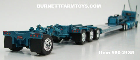 Item #60-2135 Aqua Blue Metallic Black Stripe Silver Outline Peterbilt 389 36-inch Flattop Sleeper with Aqua Blue Metallic Tri-Axle Heavy Haul Fontaine Magnitude Lowboy Trailer with Jeep and Stinger - 1/64 Scale – DCP by First Gear