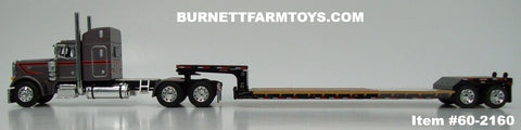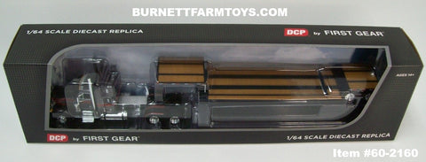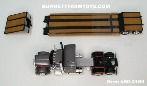Item #60-2160 Gun Metal Gray Metallic Black Stripe Orange Outline Peterbilt 379 48-inch Mid Roof Sleeper with Black Tandem Axle Fontaine Renegade Machinery Trailer - 1/64 Scale – DCP by First Gear