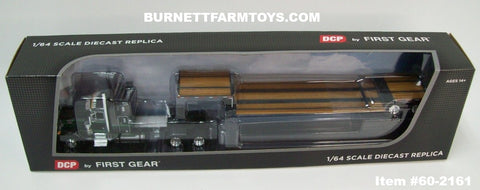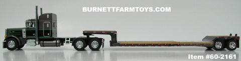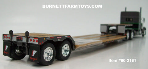 Item #60-2161 Gun Metal Gray Metallic Black Green Outline Peterbilt 379 48-inch Mid Roof Sleeper with Gun Metal Gray Tandem Axle Fontaine Renegade Machinery Trailer - 1/64 Scale – DCP by First Gear